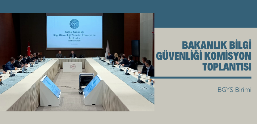 Sağlık Bakanlığı Bilgi Güvenliği Politikaları Yönergesi gereği, Bakanlık genelinde bilgi güvenliği ve siber olay yönetimi ile ilgili konularda en üst düzeyde koordinasyon ve karar organı olarak görev yapmak üzere kurulmuş olan “Bilgi Güvenliği Yönetim Komisyonu”nun 2021 yılı olağan toplantısı, Sağlık Bilgi Sistemleri Genel Müdürü Dr. M. Mahir ÜLGÜ’nün başkanlığında 23/11/2021 tarihinde 14.00-17.00 saatleri arasında Bakanlık Bilkent Yerleşkesi zemin kat toplantı salonunda gerçekleştirilmiştir.